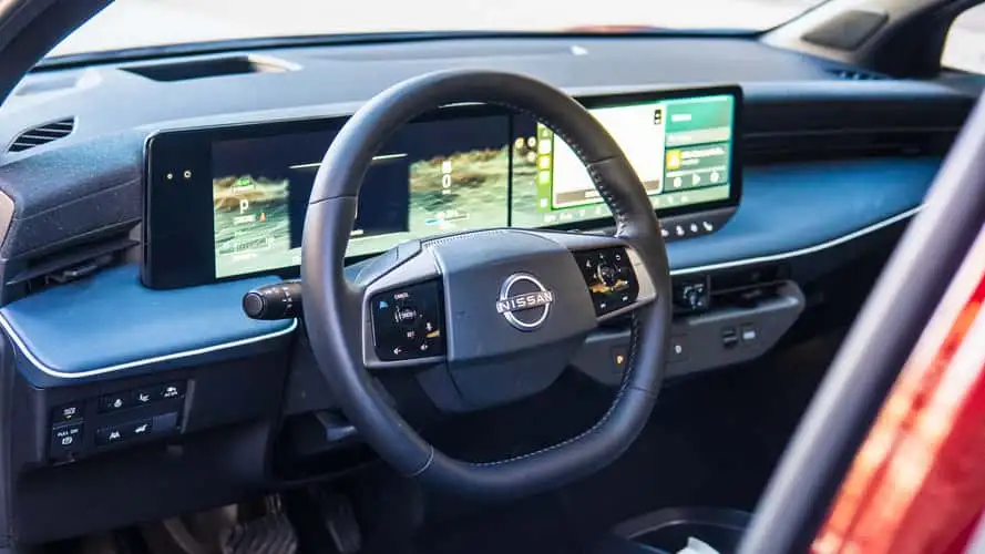 That trim level is loaded, too. You get a multi-segment electronically dimming panoramic roof, faux leather seating, LED lights at all four corners, a Bose sound system and dual 14.3-inch driver displays. Those displays are running Nissan’s newest software, which uses Google Built-In for apps, maps and voice controls.