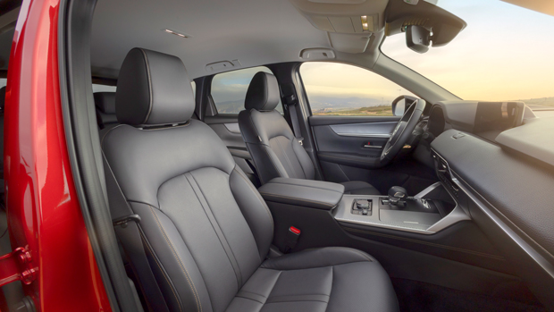 The steering wheel continues to be an attractively thin-rimmed leather affair with delicate shortcut buttons and paddle shifters. The small gear selector takes cues from the MX-30 Electric, and the quality stereo continues to be sourced from Mazda’s long-time audio partner Bose.