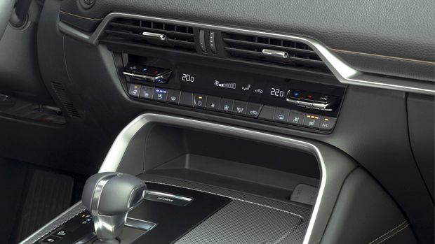 Like its Mazda siblings, though, the CX-60’s cabin is based around a wide dashboard that is relatively unadorned by superfluous detailing – and it’s an interior where (subtle) buttons still do most of the inputting. The new 12-inch screen has touch capacity only for Apple CarPlay and Android Auto, which are wireless – but were not activated on our test car.