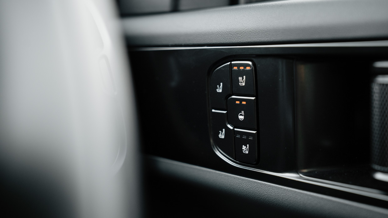 Below that, on the L-shaped centre console, is another row of buttons, this time physical, for windscreen/rear screen heating, recirc, and to turn the climate system off entirely.