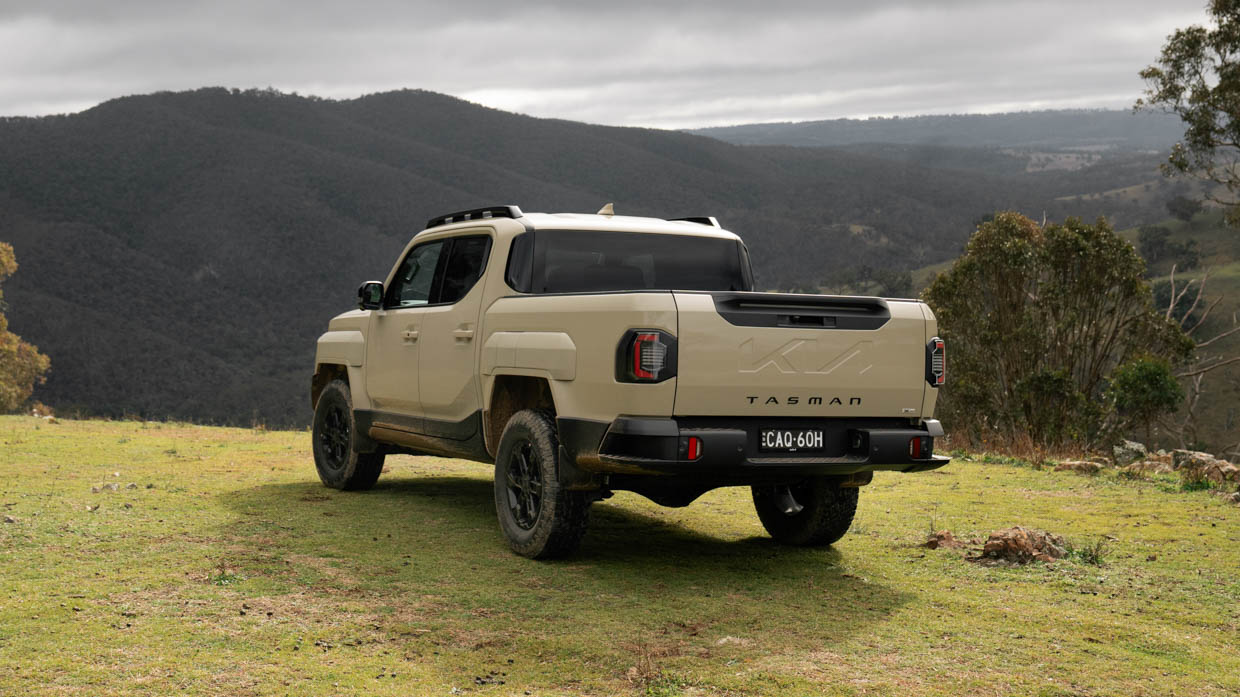 The suspension is, typically for a ute, a double-wishbone front and leaf-sprung rear design, with Kia Australia successfully arguing the case away from single-rate to triple-rate springs, which required expensive changes to the hard points of the Tasman during development.