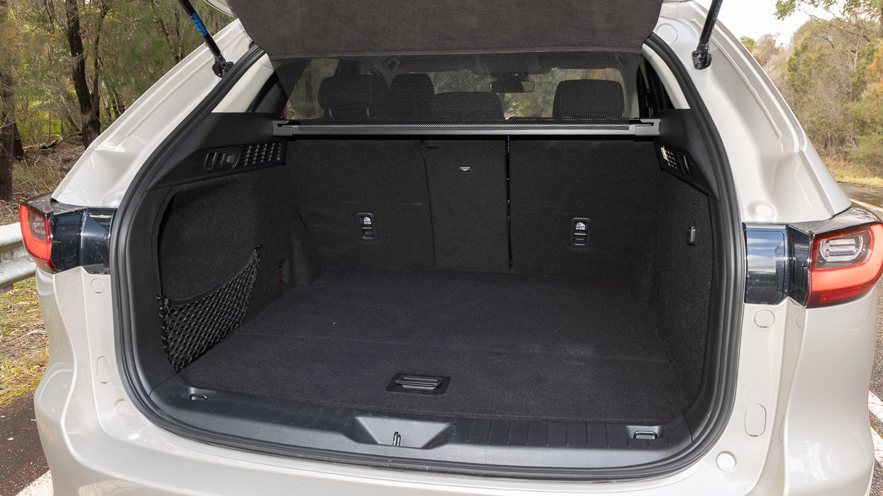 Practicality has never been a CX-60 strong point, with front door bins limited to a 500mL camping bottle, small centre storage bin and centre console that’s focused on looking sleek, rather than useful storage.