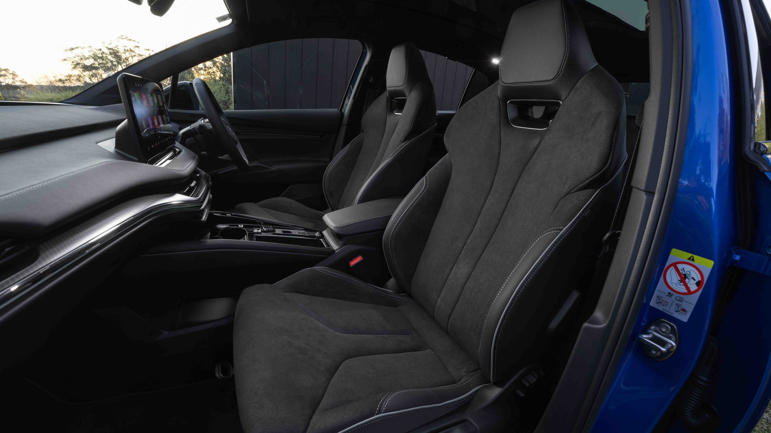 The floating 13-inch touchscreen just avoids some of those clumsy Volkswagen Group UI traits of recent times, with customisable home screen shortcut icons for functions such as climate control adjustment. Content is clear, legible and natural…and unlike Tesla, (wireless) Apple CarPlay or Android Auto connectivity anchors infotainment.
