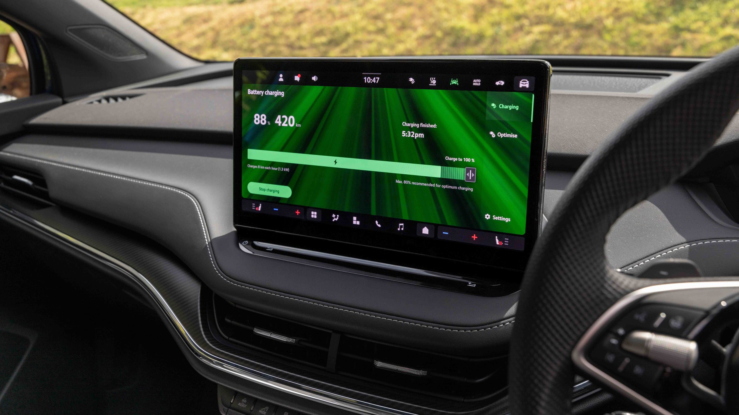 Both grades feature the same 77kWh usable battery, with the Sportline good for a quoted WLTP range of 561km, ahead of the 530km for the RS.