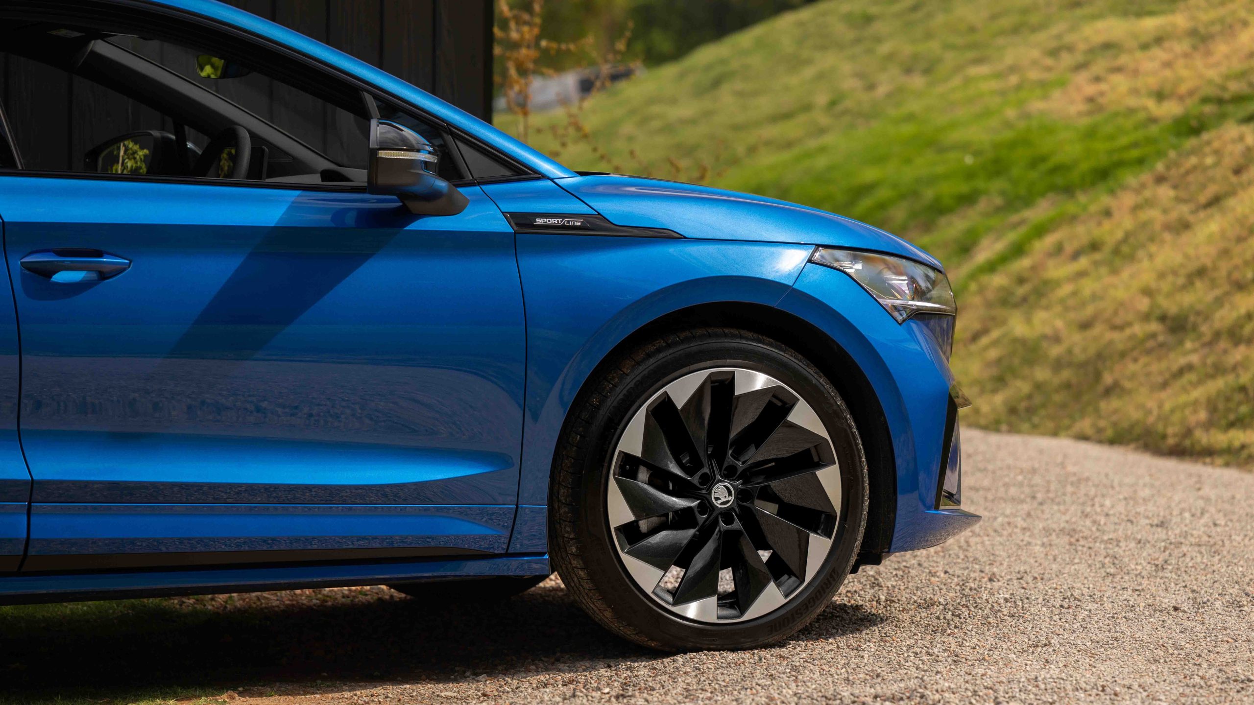We got to sample all three on our local launch drive, but today we focus predominantly on the entry-level Sportline, which we had specified in Race Blue Metallic. Pleasingly, you don’t have to pay extra for any of the colours on the Enyaq.