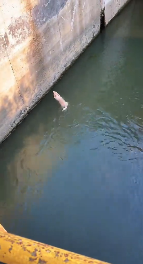 M2810021_Today, while I was out for a walk, I suddenly discovered a dog that had fallen into the water under the bridge I was crossing. The wall was too hi_part2